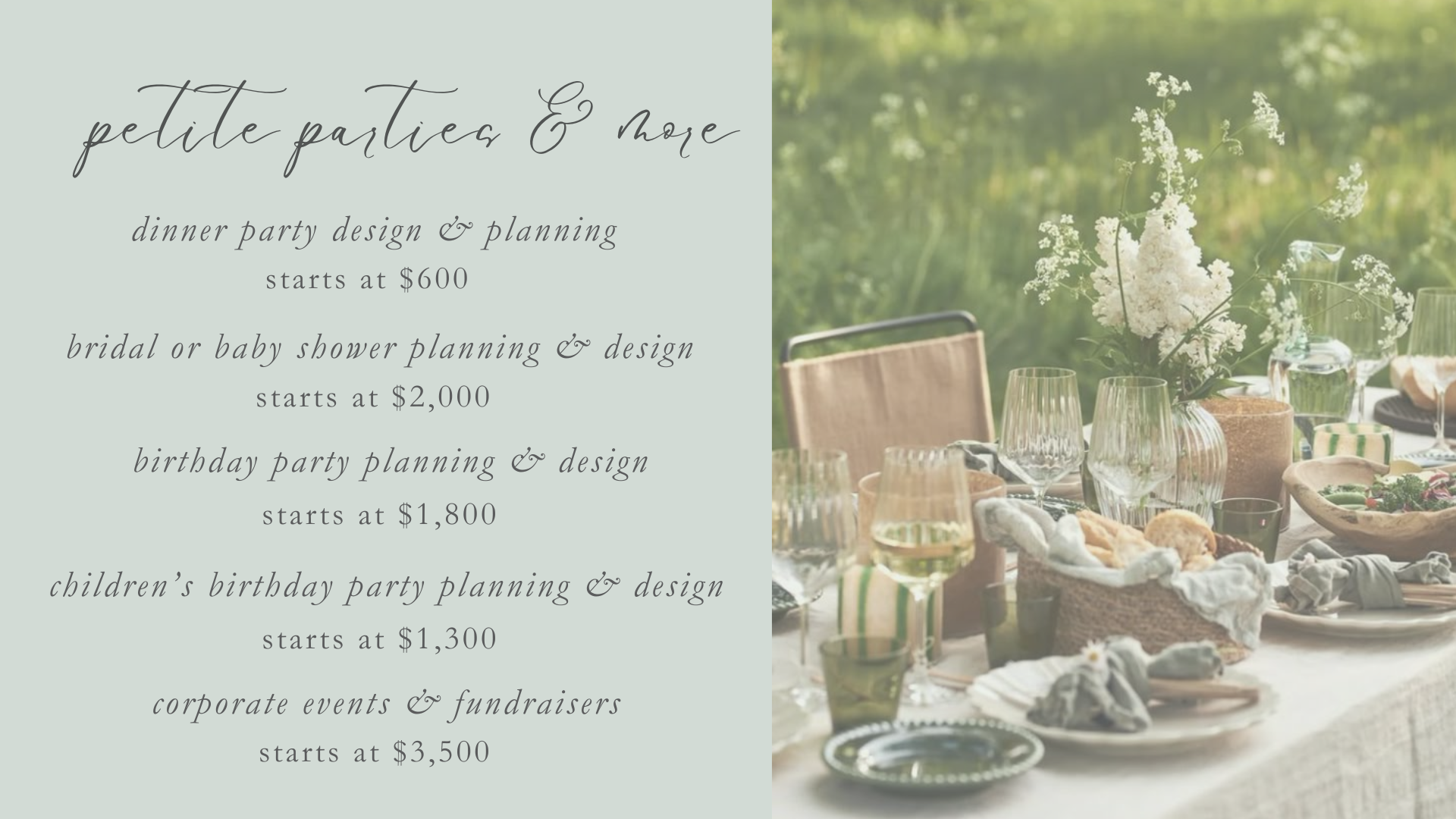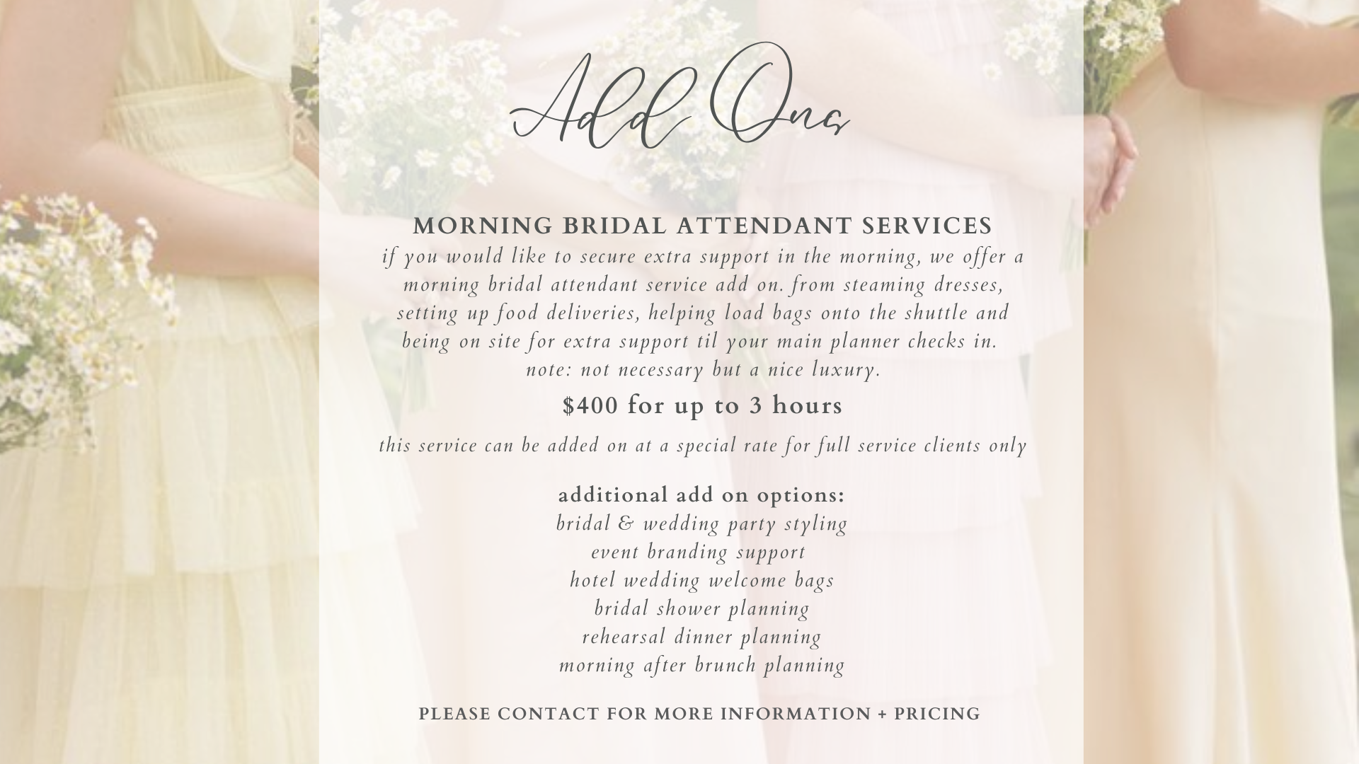 contact us to get started let's work together! client's name * First Name Last Name Email * which type of package are you interested in? * tell us more about your event * Thank you for getting in touch! we will get back to you within 24-48 hours! if you do not receive a response, please check your spam folder as well.